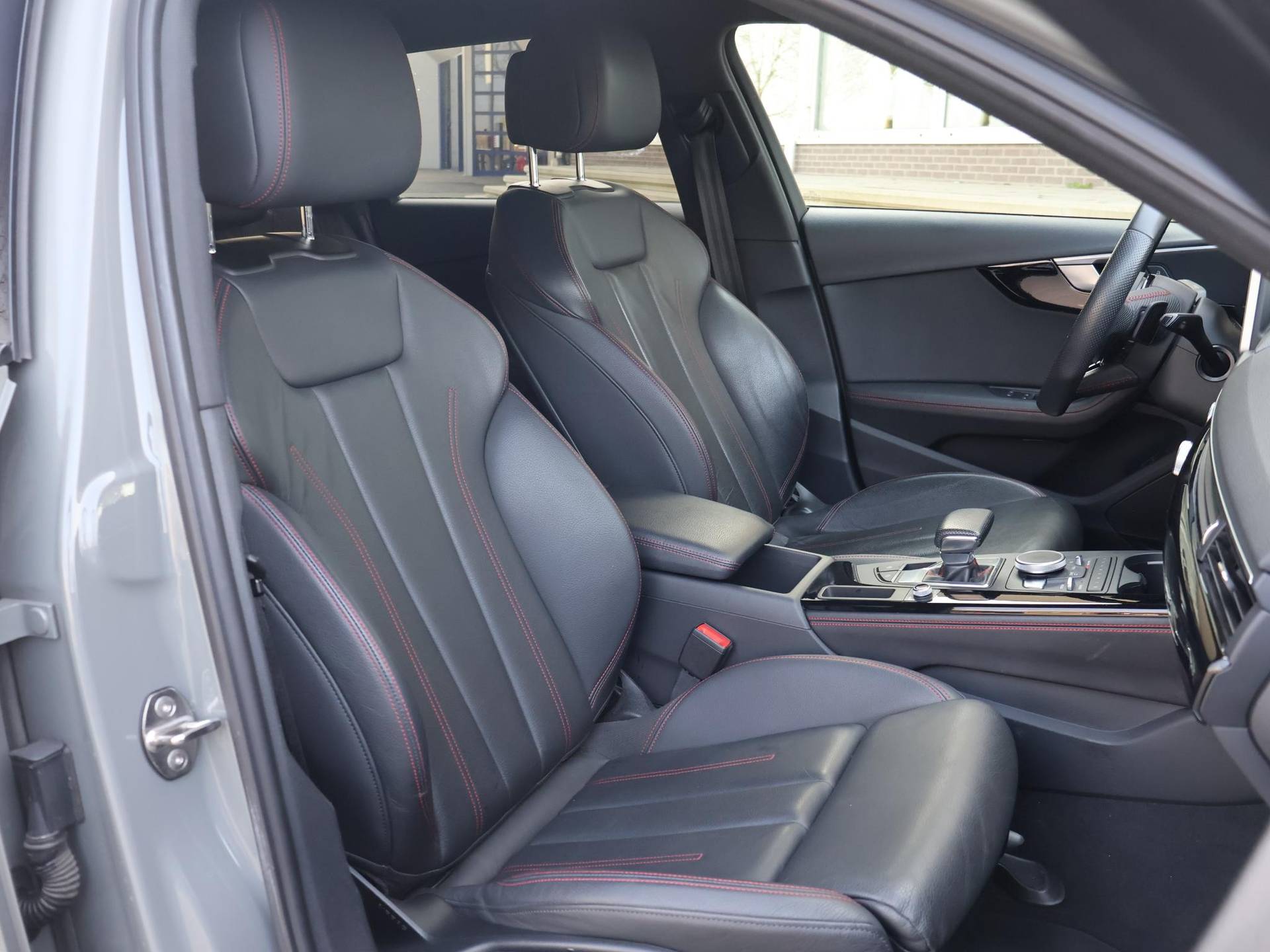 Origineel Nederlanse auto, A4 35 TFSI 1.5 150 PK Automaat, Sport S Line Black Edition uitvoering in de topkleur Quantumgrijs met 20 inch lichtmetalen velgen, Zwart volledig leder sportinterieur met rood stiksel en verlengbaar zitvlak, Leder sportstuurwiel, Stoelverwarming, Zwarte hemelbekleding, Afneembare trekhaak, Privacy glass, Zwarte exterieurstyling, Virtual cockpit digitale cockpit met verschillende thema's en navigatie kaartweergave, 3-Zone Climate control met bediening achterin, Cruise control, Parkeersensoren voor en achter.