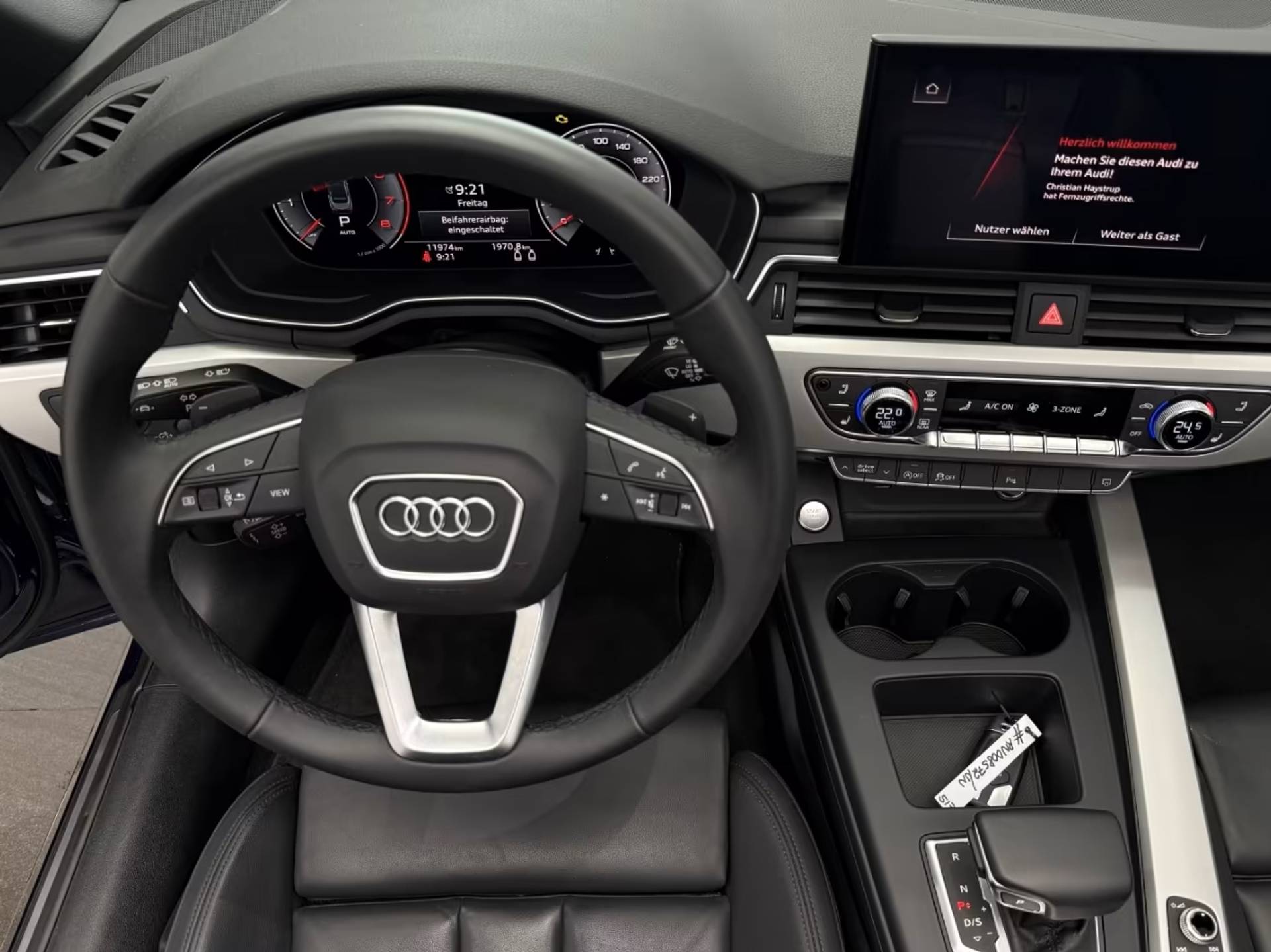 Schitterend Uitgevoerde Audi A5 Cabriolet 40 Tfsi S-Tronic van 05-2024 met 23.821km. gereden in het Navarra Blau Metallic met een Schwarz Lederen Interieur (Sportstoelen) die o.a. is uitgerust met de onderstaande opties & accessoires: (4A3) Verwarmde voorstoelen, (PXB) Matrix LED-koplampen met Audi laserlicht & LED-achterlichten en koplampreinigingssysteem, (6K8) Audi pre sense city, (7K1) Bandenspanningscontrolesysteem, (9ZE) Audi telefooncel, (PYH) Navigatiepakket, (PYG) Smartphone infotainmentpakket, (GB1) LTE-ondersteuning voor Audi telefooncel, (IW3) Audi connect noodoproep & service met Audi connect afstandsbediening & bediening, (QV3) Digitale radio-ontvangst, (9K1) Nekverwarming voor, (4GF) Voorruit met warmte-isolerend en akoestisch glas, (9AQ) 3-zone deluxe automatische airconditioning, (9S9) Audi virtual cockpit plus, (1XW) Multifunctioneel 3-spaaks lederen stuurwiel met Schakelfunctie, (4UF) Airbags voorin / airbag voorpassagier uitschakelbaar, (VL1) Verbeterde voetgangersbescherming, (6XL) Buitenspiegels elektrisch verstelbaar & verwarmbaar, (8K4) Dagrijverlichting, (1G8) Bandenreparatie-set, (4X1) Zij-airbags voor, (3B3) ISOFIX kinderzitje bevestiging en top tether voor de achterbank, (7S1) Winddeflector, (7L8) Start-stopsysteem, (V88) 18-inch L.M. Velgen, Lendesteun Voor, Achteruitrij-camera, Adaptive Cruise Control, Etc, etc......
