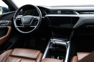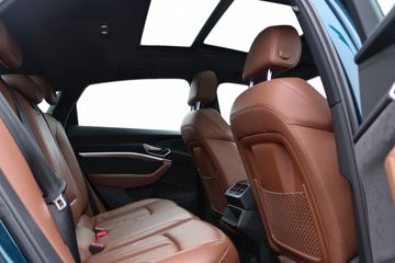 Met een indrukwekkende wielbasis van 2928 mm biedt de Audi e-tron Sportback niet alleen veel ruimte en comfort voor u en uw passagiers, maar ook een stabiele en soepele rijervaring. Dankzij de metallic lak en het krachtige design is deze Audi een streling voor het oog en een genot om in te rijden.