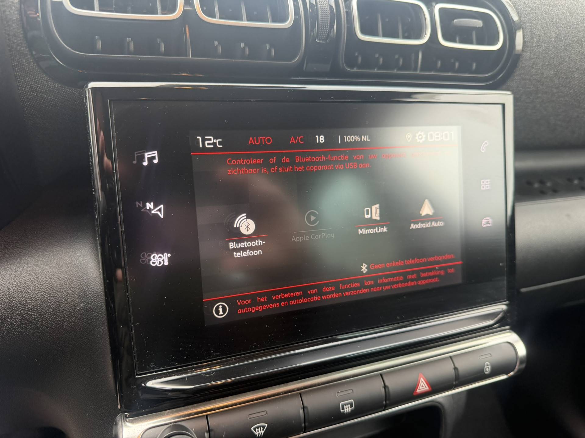 Via uw smartphone en Connected Services checkt u eenvoudig de belangrijke functies van de auto, overal en altijd. Met DAB-radio heeft u onderweg veel keuze in zenders en genres. Uw oren worden verwend met het perfecte audiosysteem. Te weinig afstand tussen u en de achterligger? De sensoren registreren het direct en de achteropkomend verkeer waarschuwing geeft een signaal. Automatische airconditioning regelt volautomatisch de temperatuur. U kiest de gewenste temperatuur en het systeem doet de rest. Boem is ho? Niet bij deze Citroën C3 Aircross. De piepjes van de parkeersensoren waarschuwen u op tijd voor obstakels. En deze auto heeft ook regensensor, cruise control, buitentemperatuurmeter, lederen stuur, centrale deurvergrendeling met afstandsbediening en boordcomputer als standaard uitrusting.