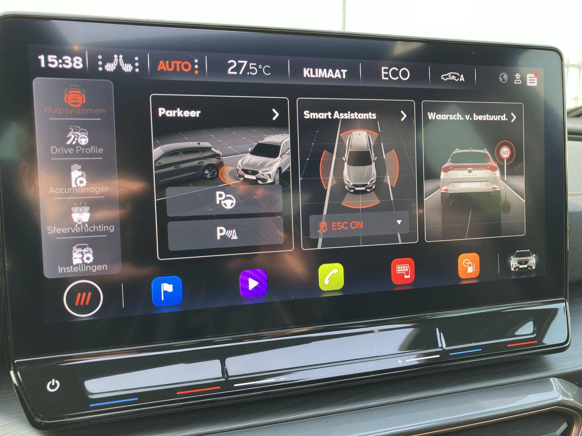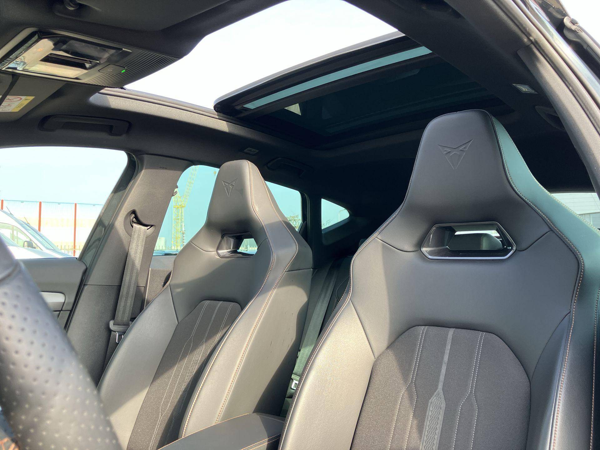 De eendrachtige samenwerking van de benzinemotor en de elektromotor geeft deze CUPRA Formentor zijn geweldige rijkwaliteiten. We nemen u in gedachten even mee. Stop uw bagage moeiteloos achterin dankzij de elektrisch bediende achterklep, neem plaats achter het stuur en zie meteen het luxe lederen interieur. Even het elektrisch bediende glazen panorama dak open en rijden maar! Regen, wind, hagel, sneeuw? Als het buiten guur is, doet de stoelverwarming z'n weldadige werk! Wind, sneeuw, hagel, regen... allemaal vergeten als u het verwarmd stuurwiel in handen heeft. Dankzij de matrix LED-verlichting geven de koplampen ook in het donker daglicht. In deze CUPRA profiteert u onder andere ook van: 19 inch lichtmetalen velgen, adaptief dempingsysteem, donker getint glas achter, in delen neerklapbare achterbank, LED-achterlichten en verstelbare lendensteunen.