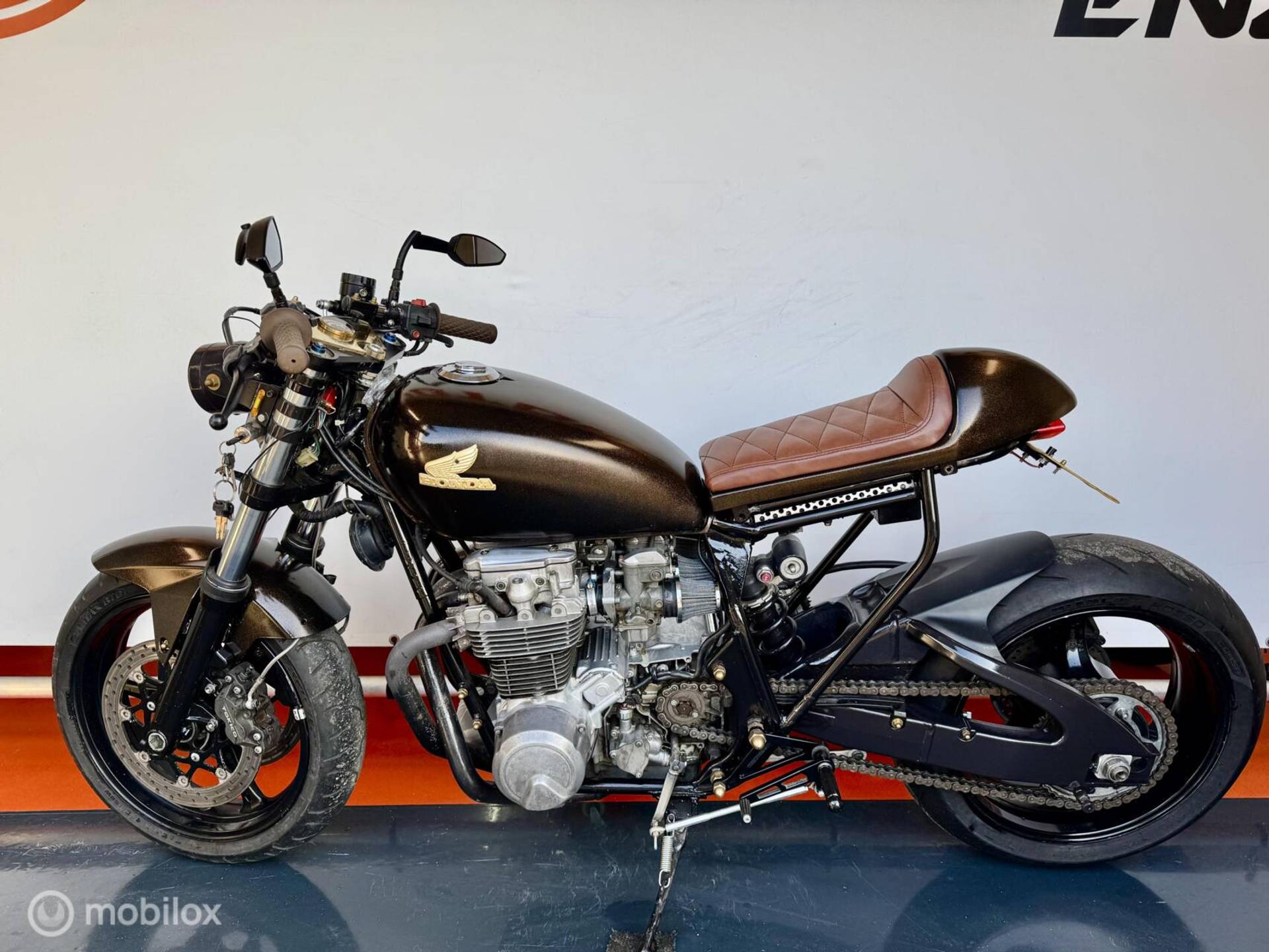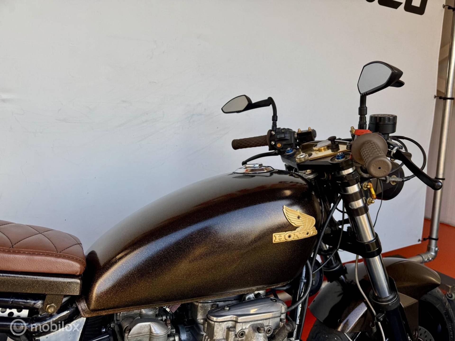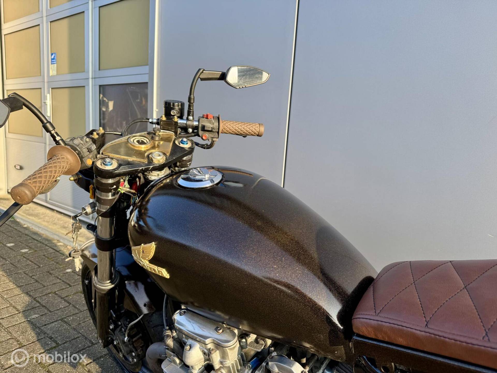 We mogen u deze unieke klassieke (1981 wegenbelasting vrij) Honda cb 650 Custom gebouwde caféracer in Midnight Gold afwerking aanbieden, deze motor is volledig aangepakt zowel technisch als optisch!