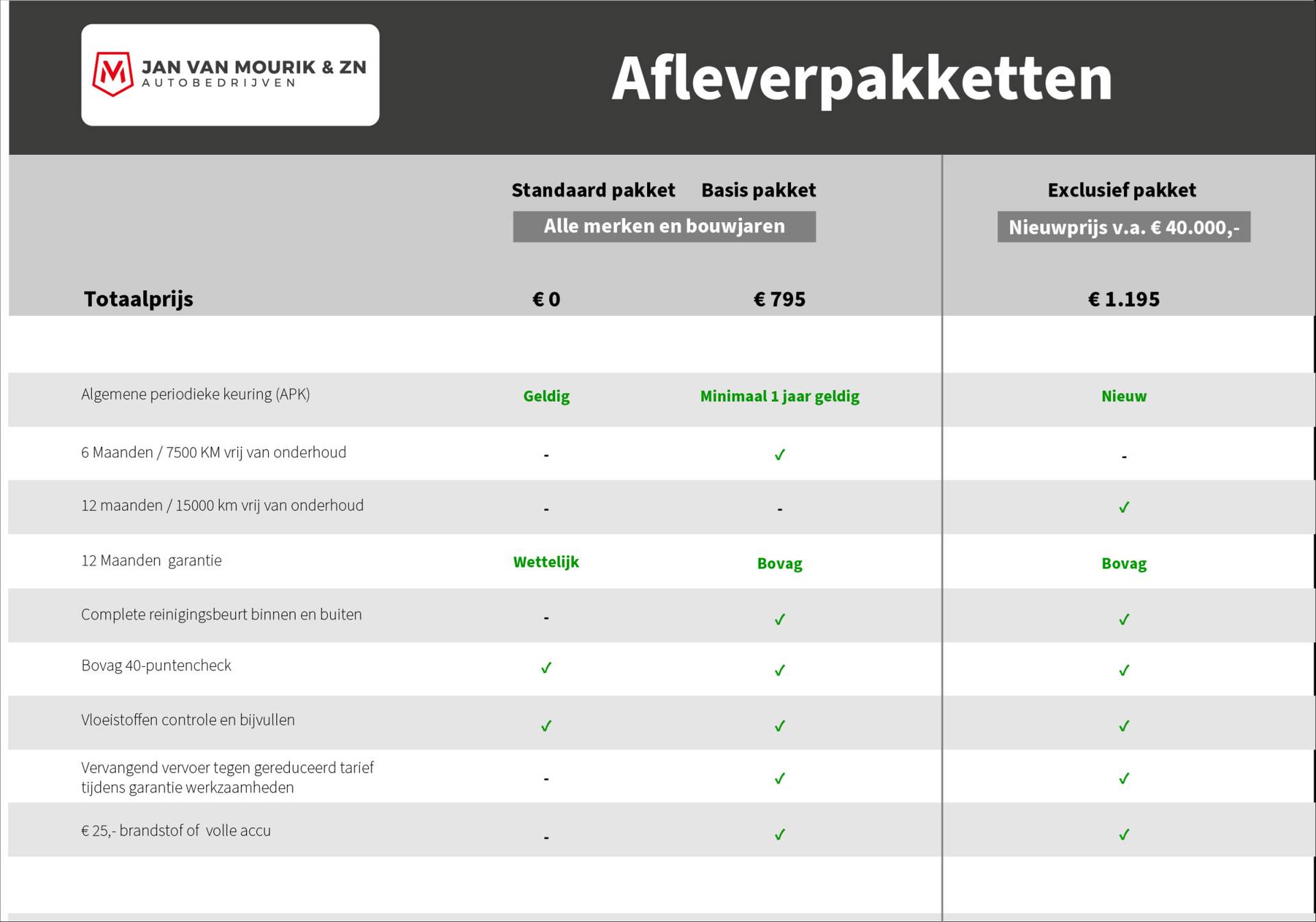 - Standaard Afleverpakket (inbegrepen):