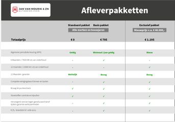 Dit afleverpakket bevat: Wettelijke garantie (12 maanden garantie); 12 Maanden Wettelijke garantie, Geldige APK, Technische inspectie, Tenaamstelling van het voertuig, Vloeistoffen controle en bijvullen - Exclusief Afleverpakket (€ 1.195 meerprijs):