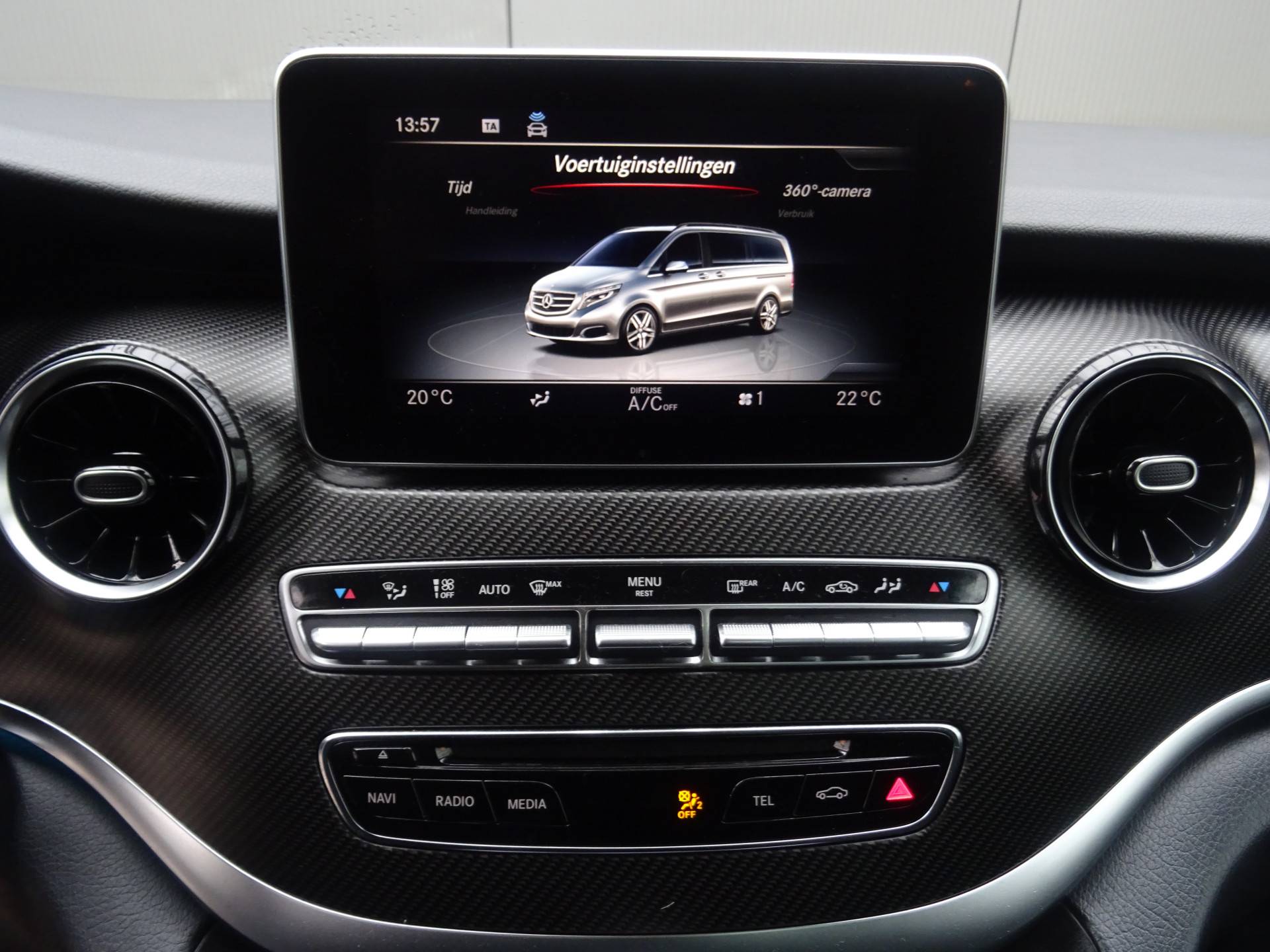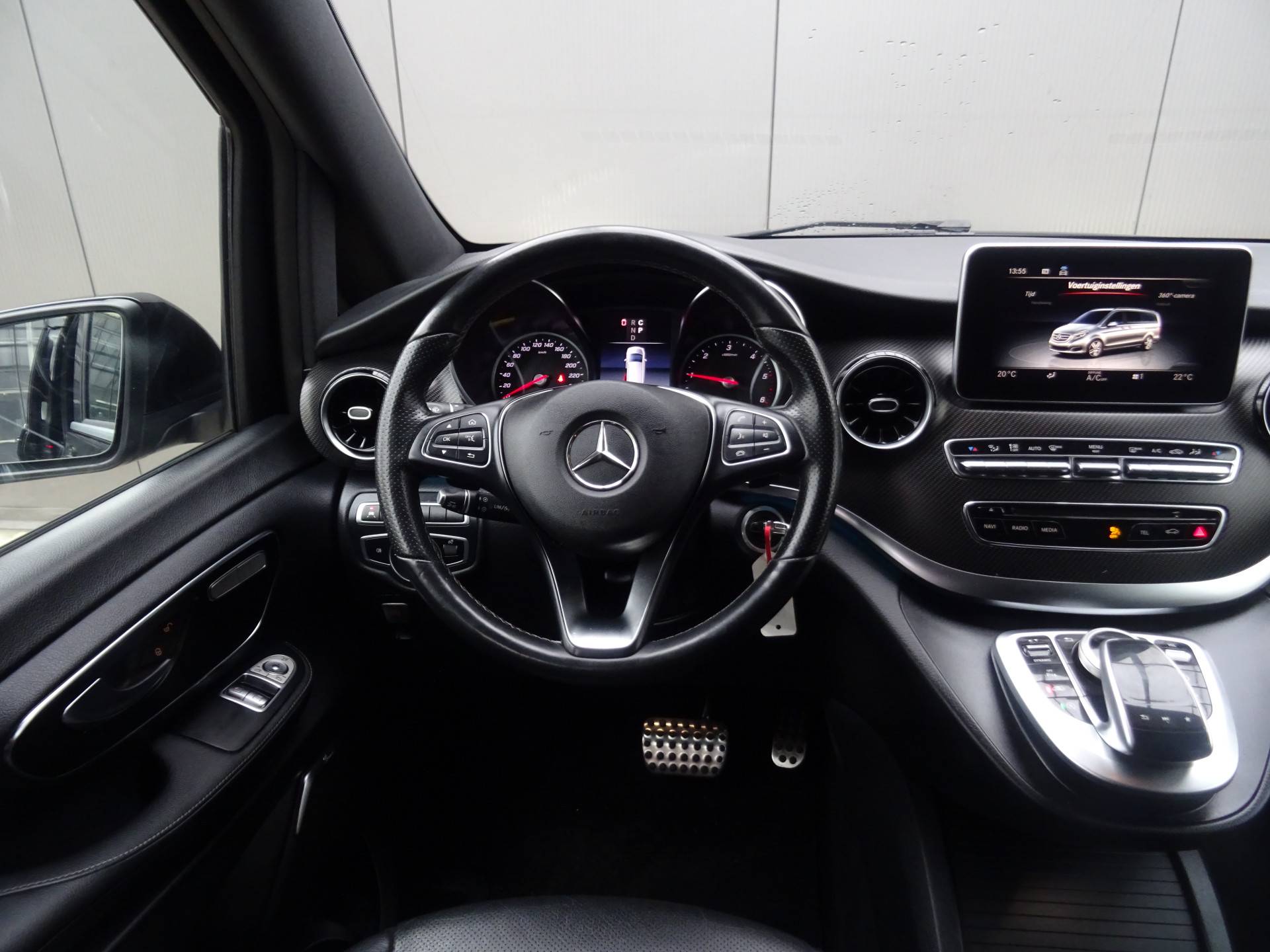 De vier camera's die samen de 360 graden camera vormen, bieden u de mogelijkheid om obstakels in elke richting te zien. Als u regelmatig met een aanhanger of een fietsendrager op pad bent, is de afneembare trekhaak een praktische extra. Het high performance audiosysteem van Burmester is volledig afgestemd op de akoestiek van de auto; genieten dus! Het comfort wordt verhoogd door de aanwezige automatische airconditioning. Een plekje vinden in de binnenstad is één, inparkeren is twee. Voor dat laatste heeft deze Mercedes-Benz V-klasse prima parkeersensoren die u een handje helpen. En deze auto heeft ook full map navigatiesysteem, regensensor, cruise control, buitentemperatuurmeter, automatisch dimmende buitenspiegels en lederen stuur als standaard uitrusting.