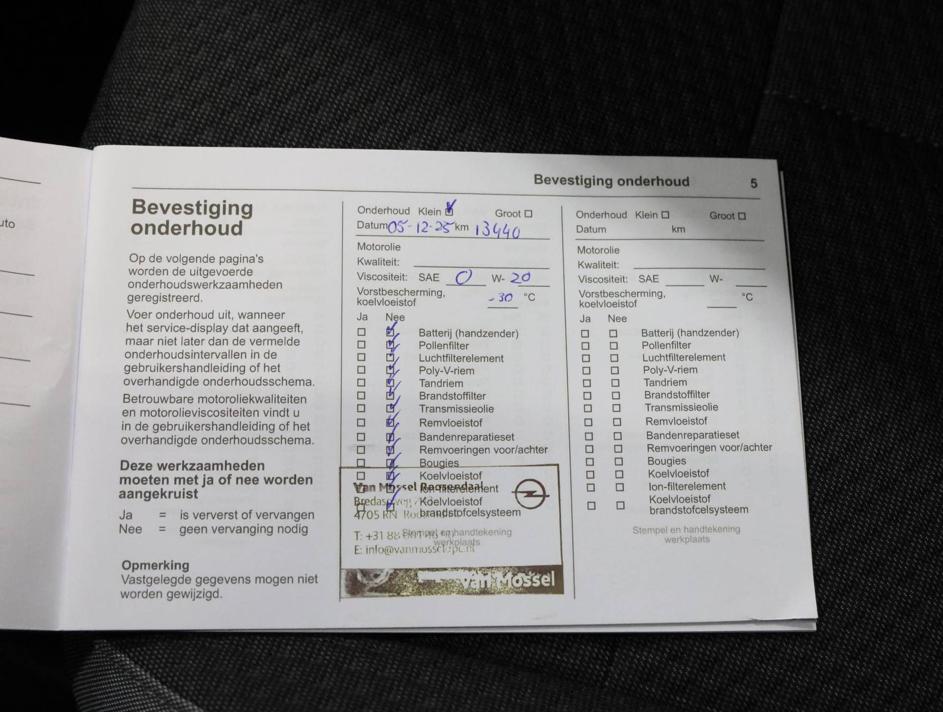 ✓ Onderhoudsboekje (fysiek)