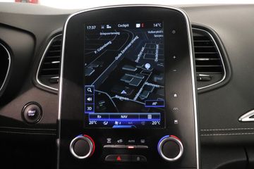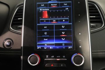 Het spreekt voor zich dat een auto als deze ook van automatische airconditioning is voorzien. De parkeersensoren waarschuwen wanneer u te krap inparkeert of dat ene paaltje niet hebt gezien. Natuurlijk is een complete auto als deze ook voorzien van sensoren die de omgeving in de gaten houden. Deze Renault heeft niet alleen een automatisch inschakelbare verlichting aan boord, maar ook een regensensor. De cruise control zorgt voor een mooie, gelijkmatige snelheid die u zelf instelt. Dat is relaxt! Met de sleutel op zak instappen en wegrijden. Keyless entry maakt het mogelijk. En deze auto heeft ook dashboard met spraakbediening, full map navigatiesysteem, DAB ontvangst, automatisch dimmende binnenspiegel, lederen stuur en boordcomputer als standaard uitrusting.