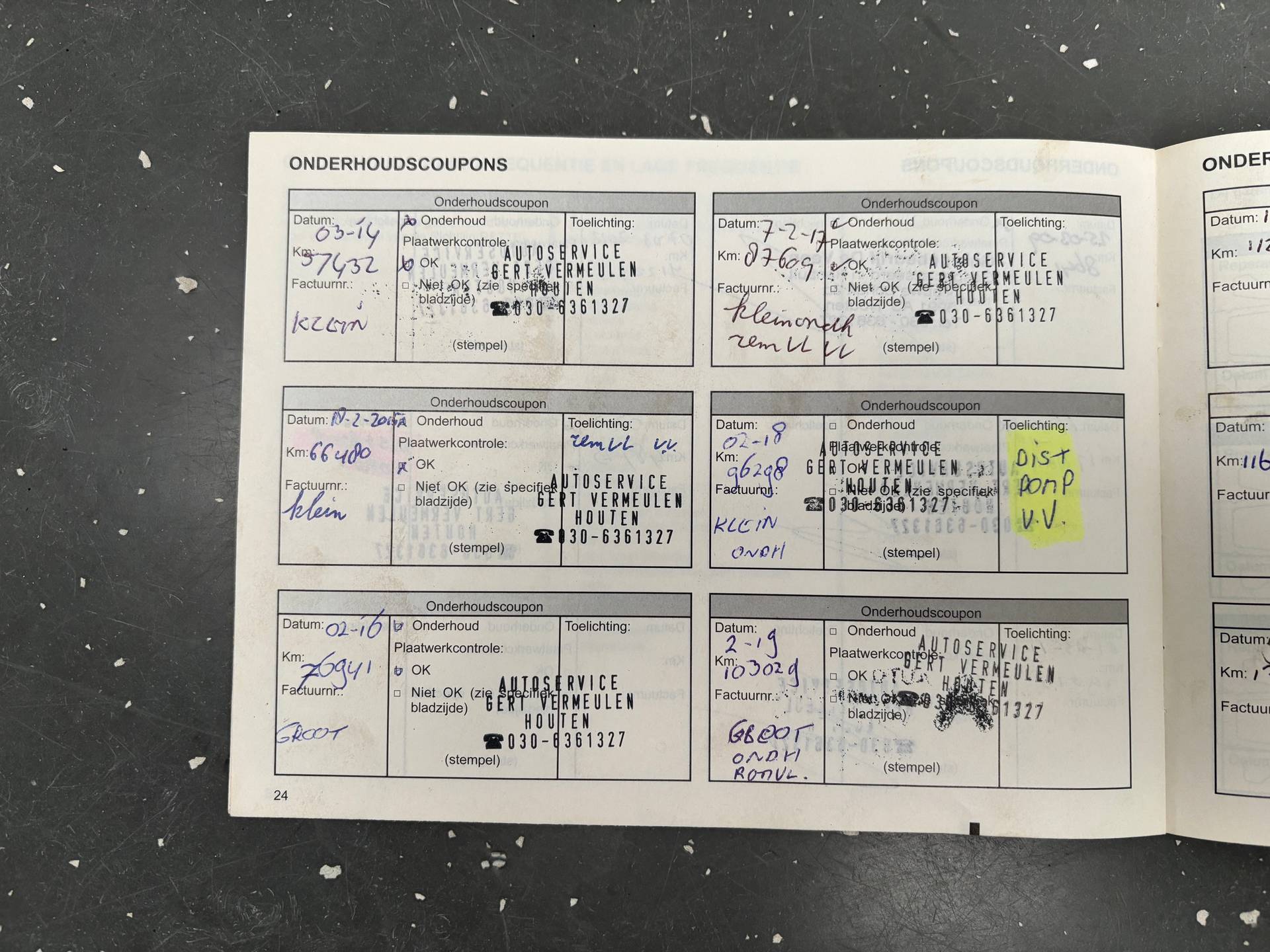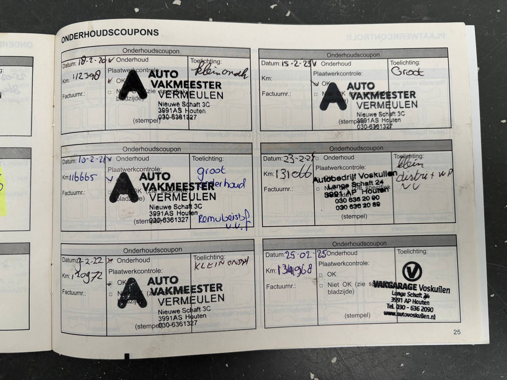 Onderhoudsboekjes: Aanwezig