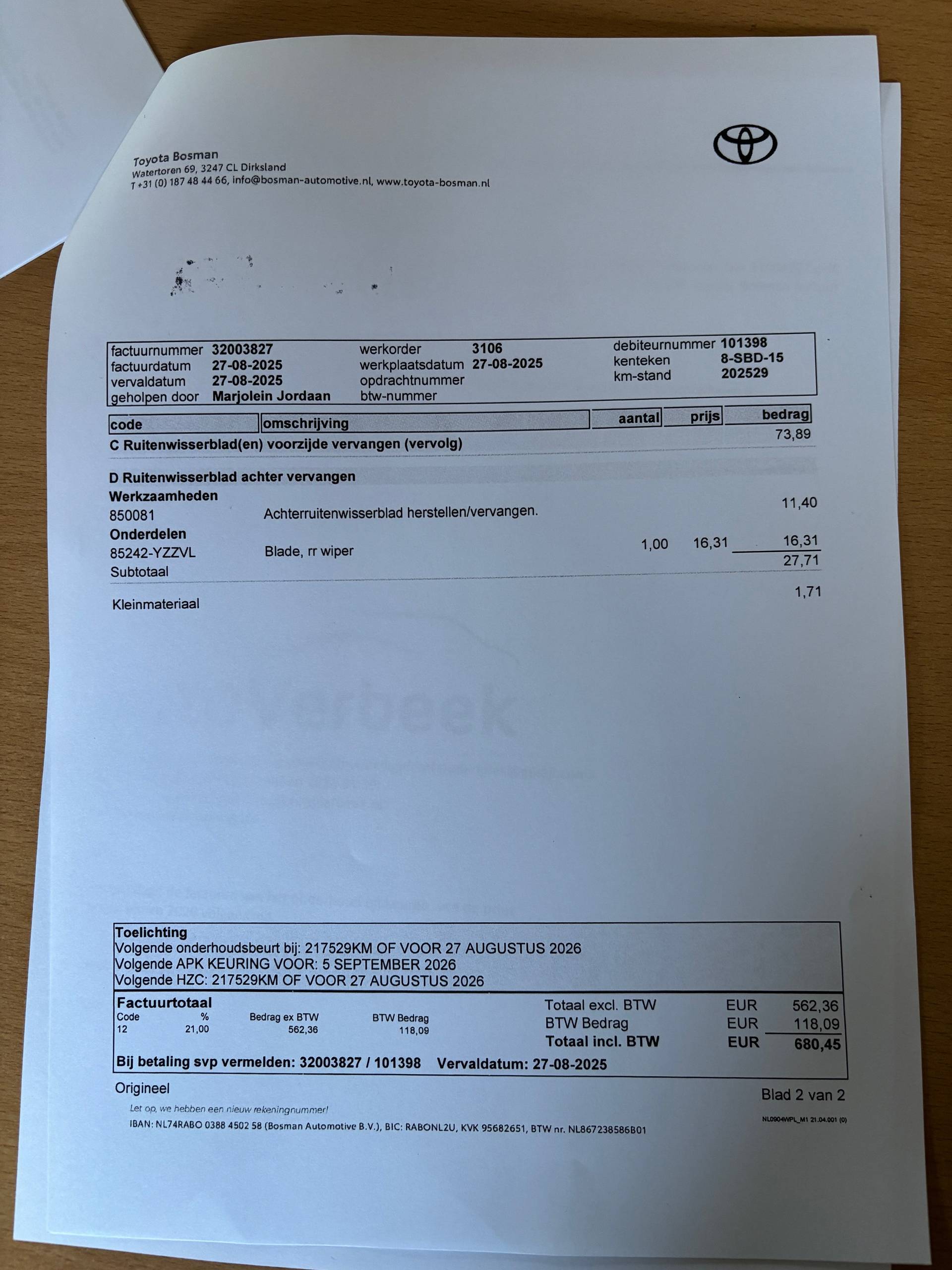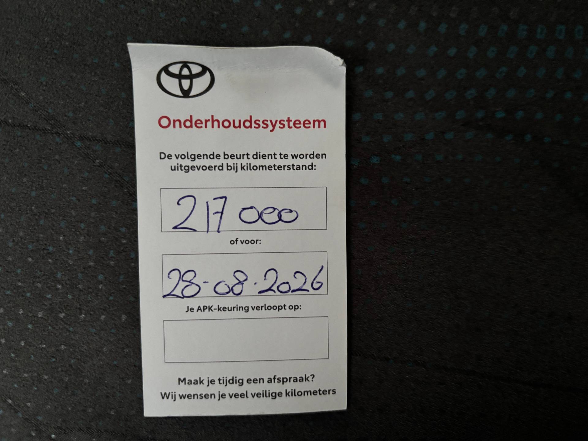 Onderhoudsboekjes: Aanwezig
