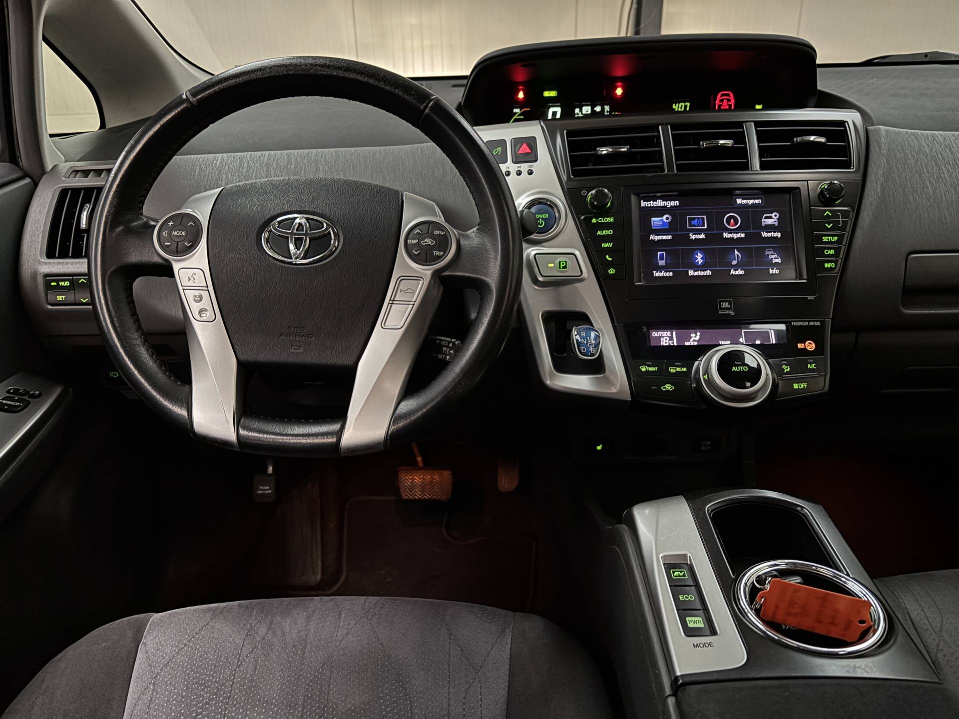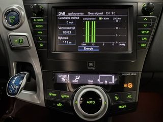 De eendrachtige samenwerking van de benzinemotor en de elektromotor geeft deze Toyota Prius Wagon zijn geweldige rijkwaliteiten. De verwarmbare voorstoelen zijn een weldaad voor rug en schouders. Het panoramadak zorgt voor zicht, licht en een enorm ruimtelijk gevoel. Verder is de Toyota uitgerust met: 16 inch lichtmetalen velgen, LED koplampen, warmtewerend glas, in delen neerklapbare achterbank en verstelbare lendensteunen. Soepel inparkeren gaat gemakkelijker dan u verwacht dankzij de achteruitrijcamera. Adaptive cruise control is een comfortabele en veilige optie. Het systeem reguleert de snelheid en houdt automatisch afstand tot uw voorligger. Als u regelmatig met een aanhanger of een fietsendrager op pad bent, is de afneembare trekhaak een praktische extra. Het high performance audiosysteem is volledig afgestemd op de akoestiek van de auto; genieten dus! Ook is de auto voorzien van electronic climate control. Natuurlijk behoren full map navigatiesysteem, regensensor, keyless entry, automatisch dimmende binnenspiegel, lederen stuur en isofix-aansluiting ook tot de uitrusting van deze complete auto. De nieuwste veiligheidssystemen komen in deze Toyota Prius Wagon samen. Een noodstop maken doet u liever niet. Maar áls het nodig is, geeft de Brake Assist maximale ondersteuning. Hebt u interesse in deze auto? Neem nu contact met ons op en we zetten hem klaar voor een proefrit.