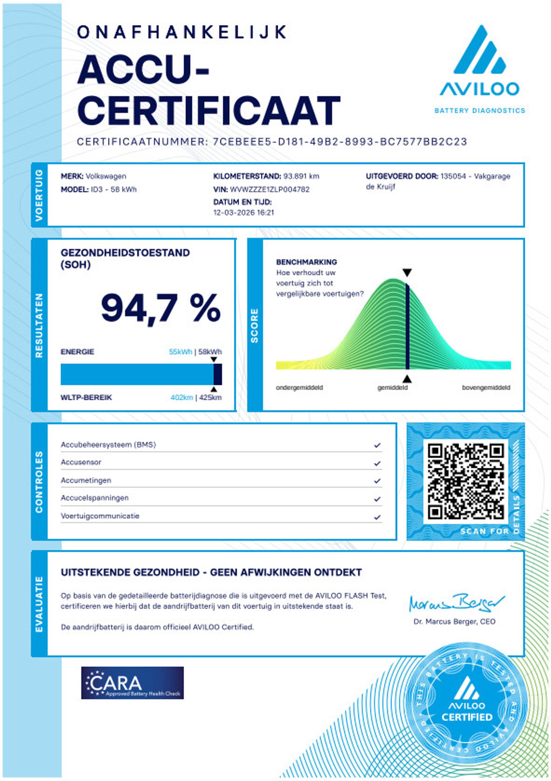 SoH Accu is 94,7% Dealeronderhouden!