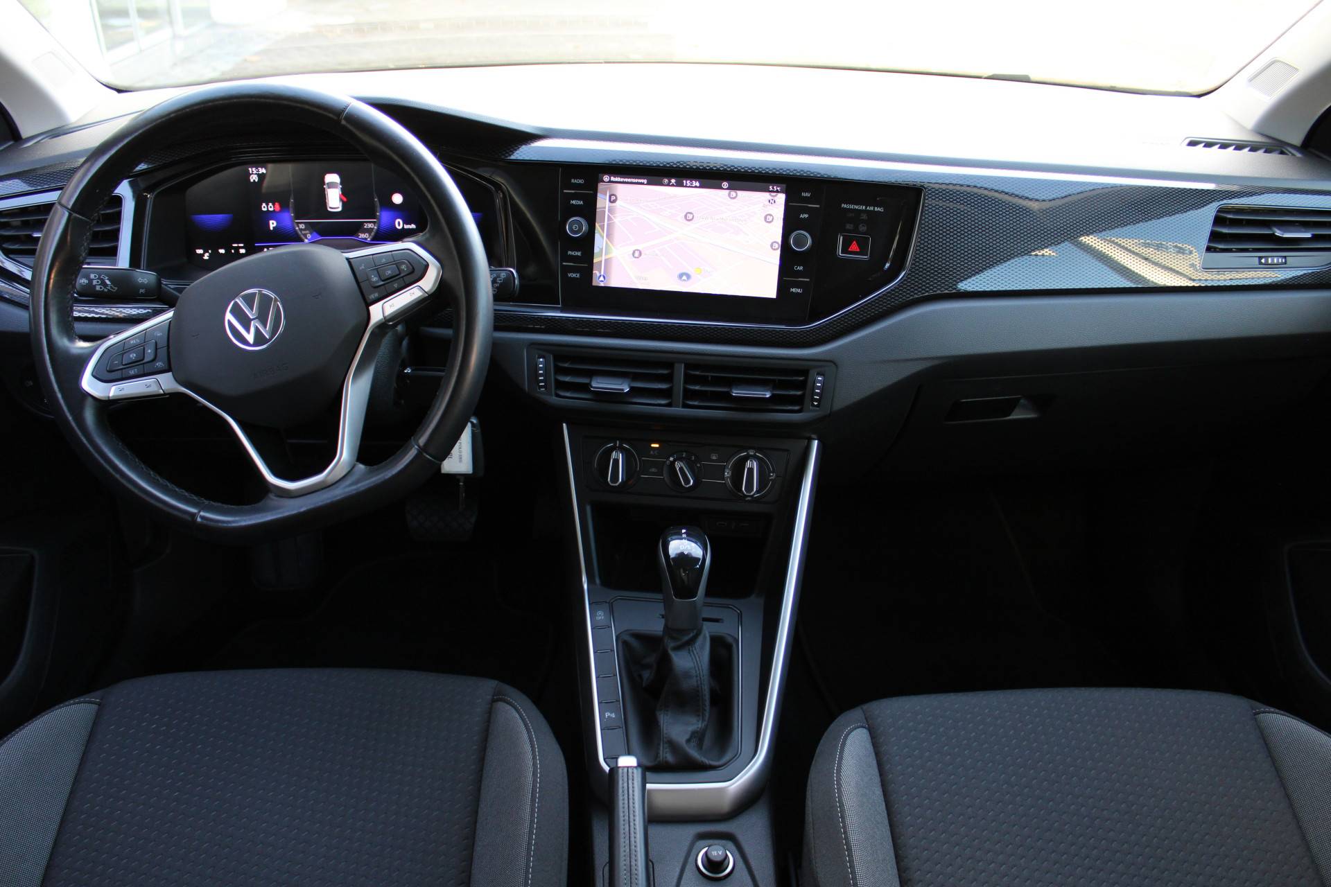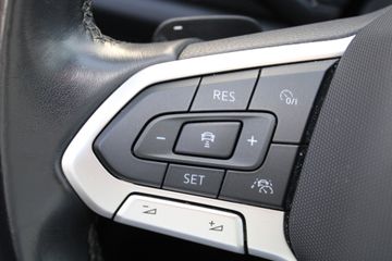Het digitale dashboard is niet alleen enorm fraai en handig, maar draagt actief bij aan een veilige en slimme rit. Met adaptive cruise control houdt deze auto automatisch afstand tot jouw voorligger. De file assistent verzacht het fileleed door automatisch veilig afstand te houden tot de voorligger en zo nodig zelfs te stoppen als de rij tot stilstand komt. Onderweg kun jij veilig genieten van het audiosysteem met DAB-radio en het navigatiesysteem. Want in deze Volkswagen bedien je ze vanaf het stuurwiel. Telefoonaccu in het rood? Laad 'm simpel op met de draadloze oplaadmogelijkheid voor telefoons. En deze auto heeft ook schakelpaddles aan het stuur, parkeersensoren voor en achter, regensensor, airconditioning, automatisch dimmende binnenspiegel en centrale deurvergrendeling met afstandsbediening als standaard uitrusting.