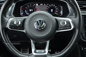 Onverminderd in de hoogste regionen van favoriete auto's: de Duitse merken. Want hoeveel keus er ook is, ze hebben allemaal die ijzersterke kwaliteit. Het zijn de degelijkheid van de constructie en de doordachtheid van het ontwerp die ervoor zorgen dat een Volkswagen jarenlang begeerlijk blijft. Zoals deze Tiguan Allspace, bijvoorbeeld. De aandrijving komt voor rekening van een benzinemotor en een automatische transmissie. Voorin is het 's winters genieten met de verwarmbare voorstoelen. Deze hebben bovendien een massagefunctie, zodat bestuurder en bijrijder altijd fit en soepel uitstappen. Met de comfortstoelen heeft u de zekerheid: elke rit fit door de juiste zit. Dat noemen ze nou een ruimtelijk effect: het elektrisch bediende glazen panoramadak. Met een druk op de knop gaat de elektrische achterklep open. Bij de uitrusting van deze Volkswagen horen onder meer 19 inch lichtmetalen velgen, LED koplampen, dakspoiler, extra getint glas, in delen neerklapbare achterbank en LED-achterlichten.