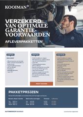 - Via Bovag afleverpakket 2 (€ 950): Afleverbeurt onderhoudsvrij 15.000 km of 12 maanden Halve tank brandstof 12 maanden Bovag garantie Gratis vervangend vervoer tijdens garantie werkzaamheden 12 maanden Pechhhulp Europa 14 dagen omruilgarantie